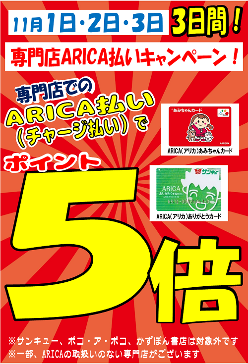 是非この機会にARICAカードのチャージ払いをご利用ください★