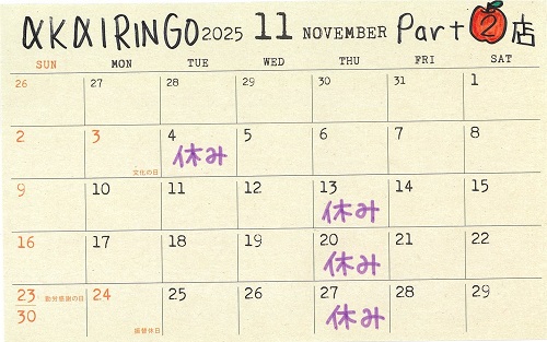 AKAI RINGO パートⅡ2025年11月3日 ショップニュース