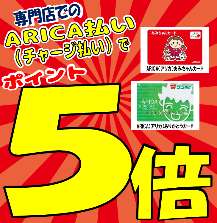 お知らせ【専門店ARICA払いキャンペーン】11/1(土)~11/3(月祝)の3日間★ポイント5倍進呈!!