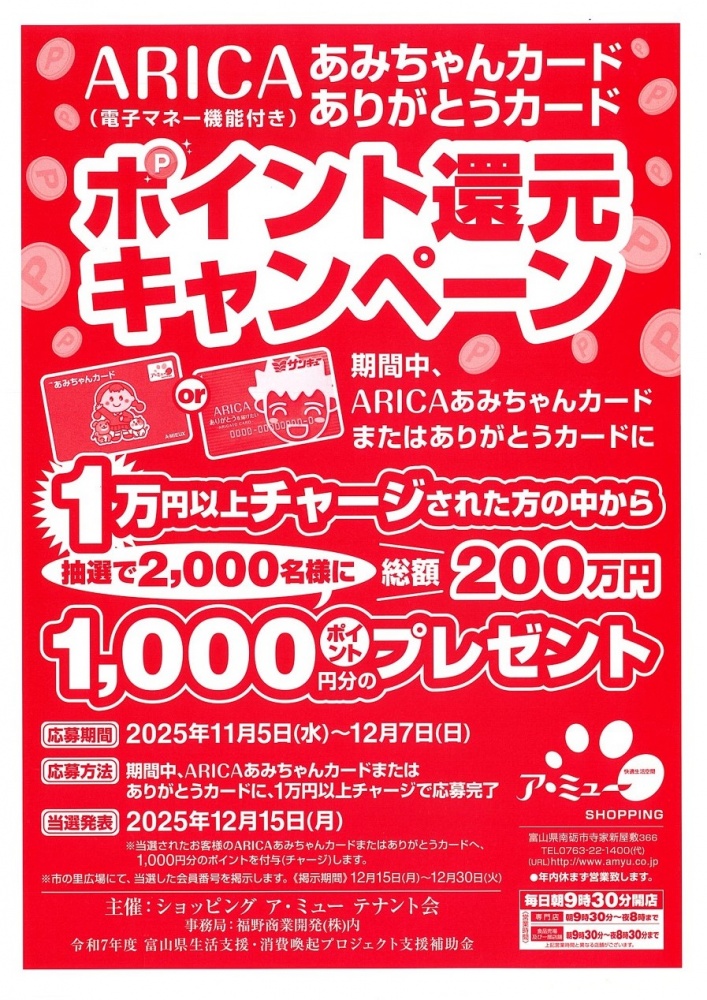 お知らせ11月5日~応募開始★チャージでポイントが当たる!ポイント還元キャンペーン