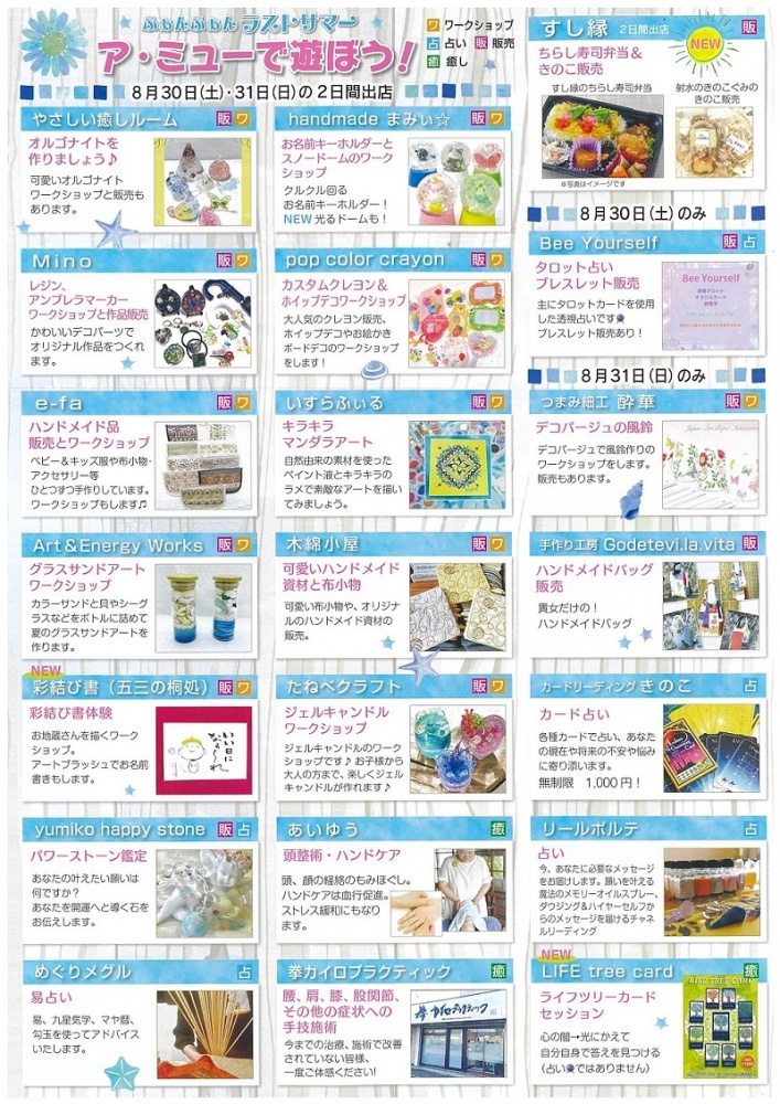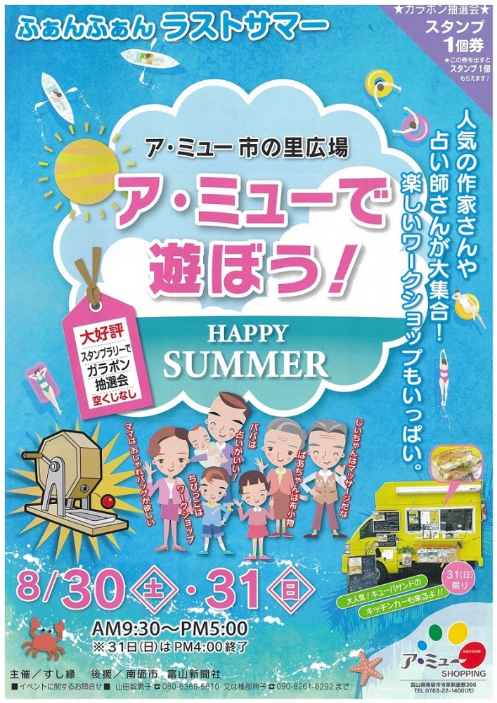 【市の里広場催事】8月30日(土)・31日(日)◆8月最後の週末はア・ミューで遊ぼう!