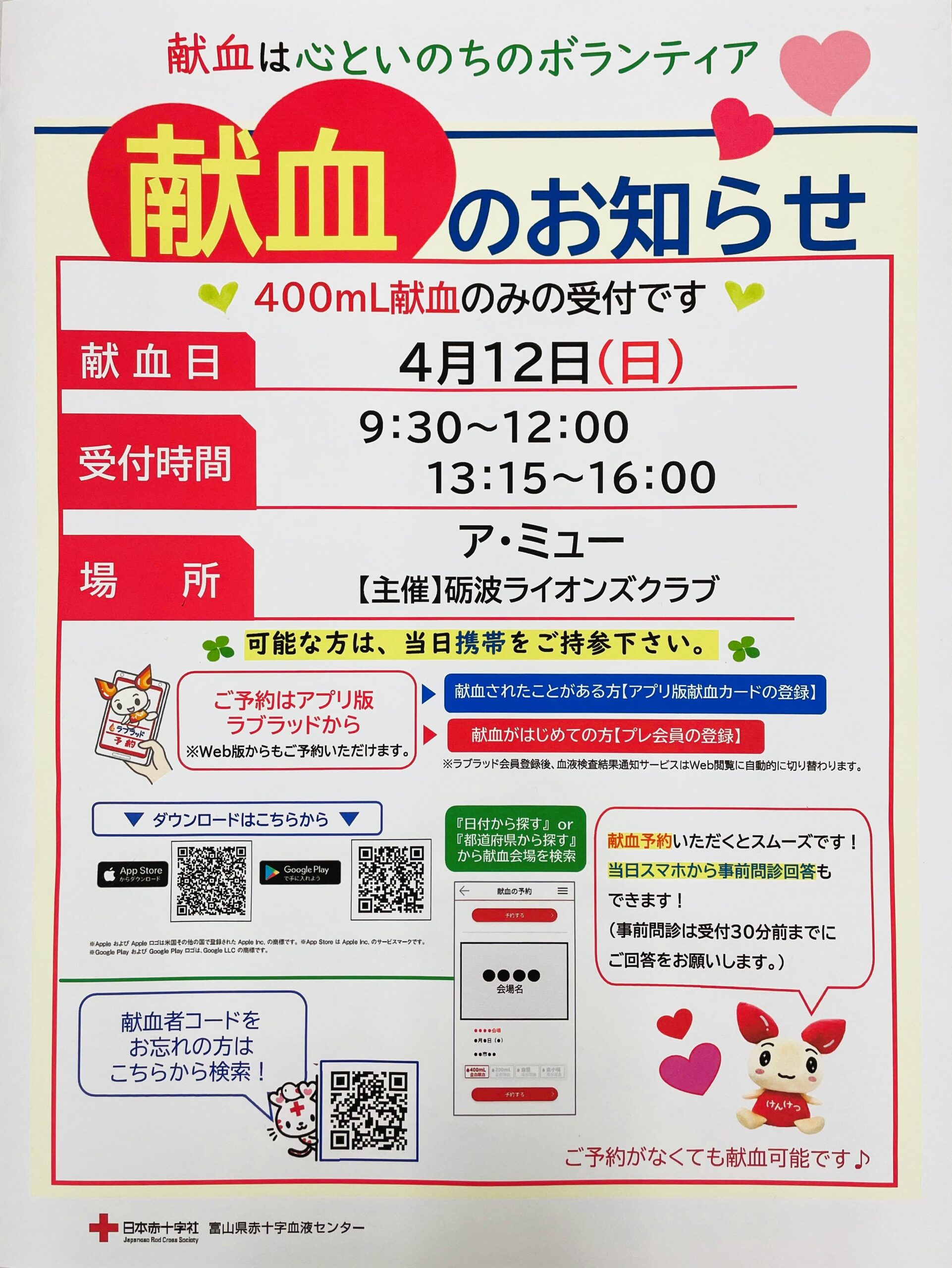 【4月12日】献血のお知らせ