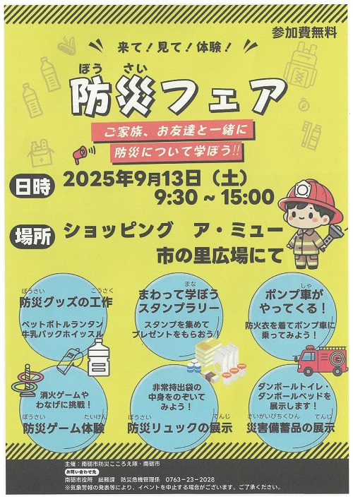 2025年9月13日(土)◆防災フェア開催のお知らせ